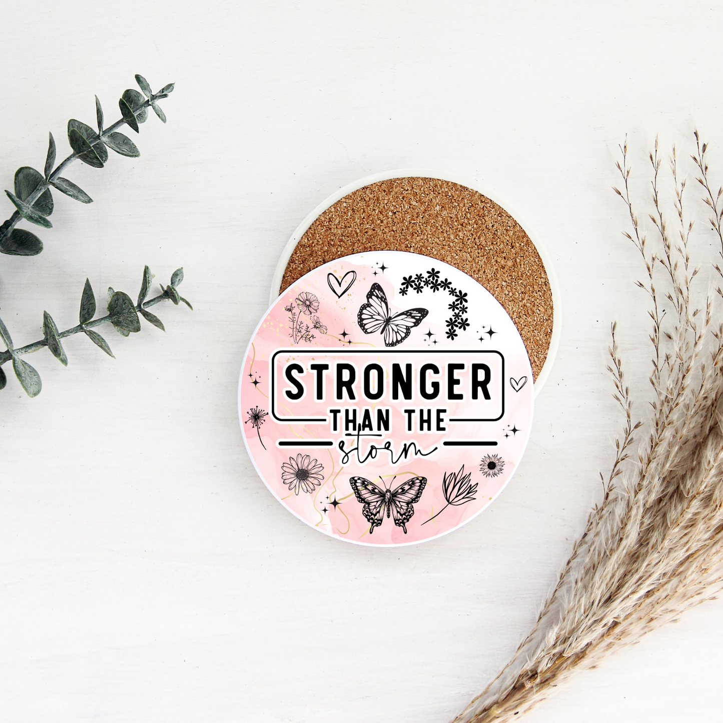 Our ceramic coasters measures 10cm round and 4inch thick and have a high gloss finish with a cork back making it a perfect drinks mat to protect your furniture.