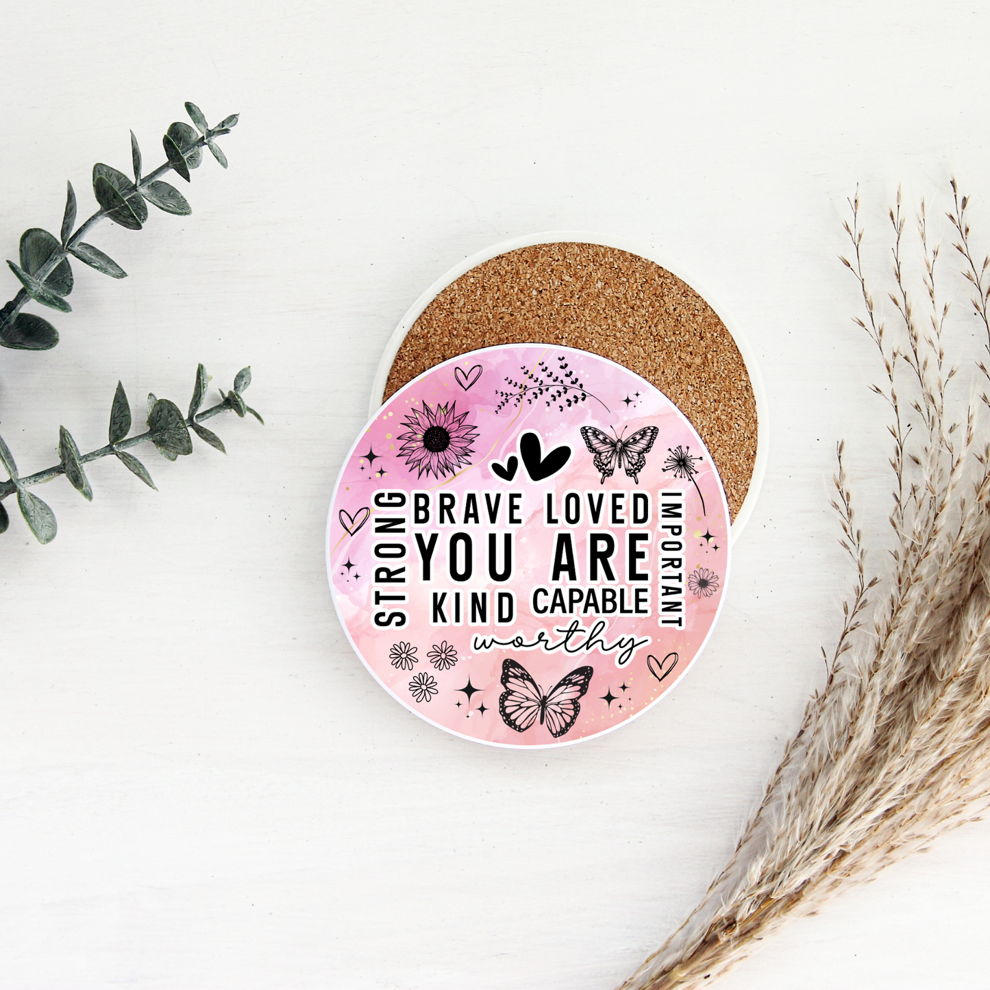 Our ceramic coasters measures 10cm round and 4inch thick and have a high gloss finish with a cork back making it a perfect drinks mat to protect your furniture.
