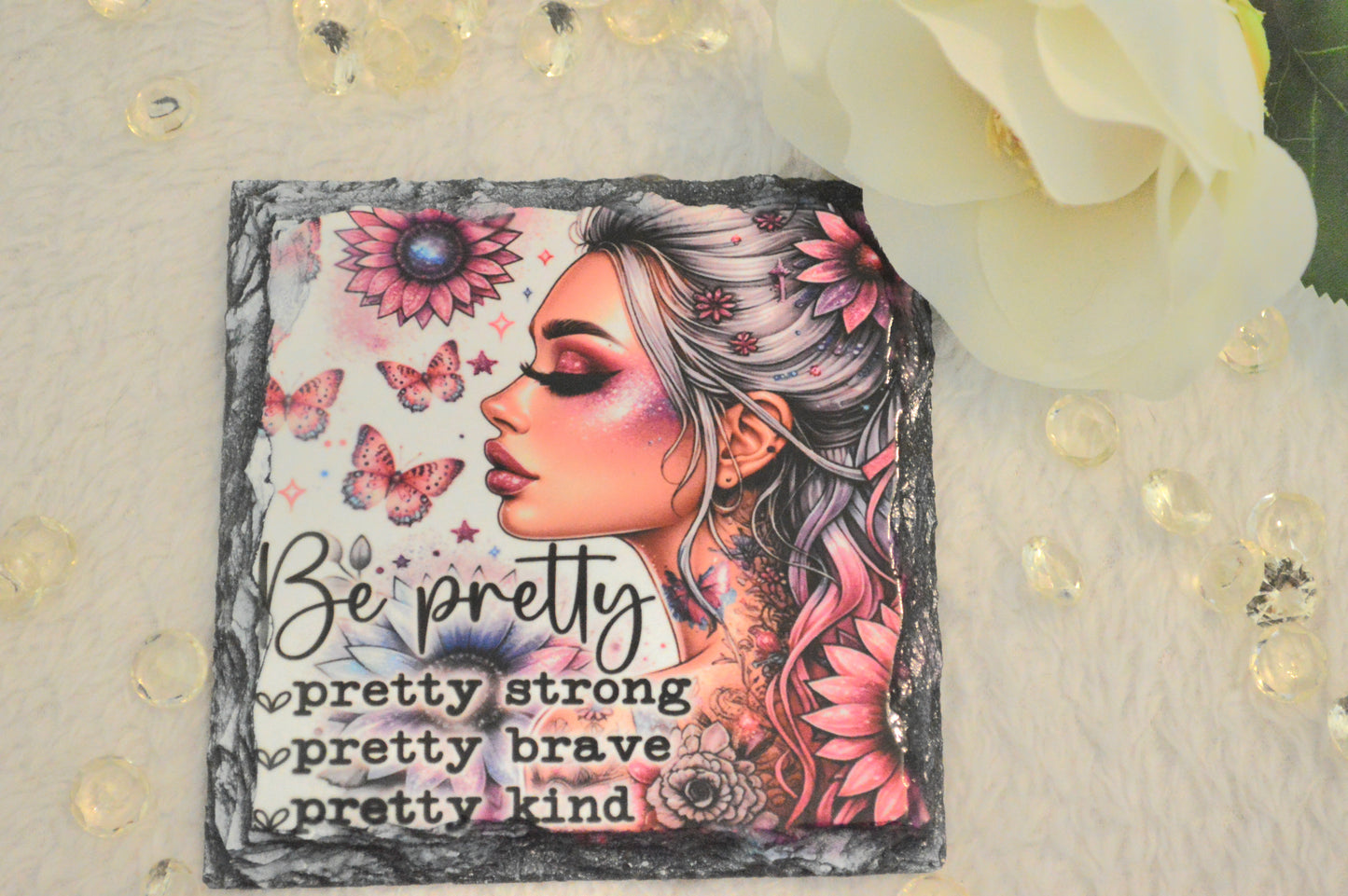 Personalised Photo Rock Slate – Includes 2 Feet for the stand and a gift box.